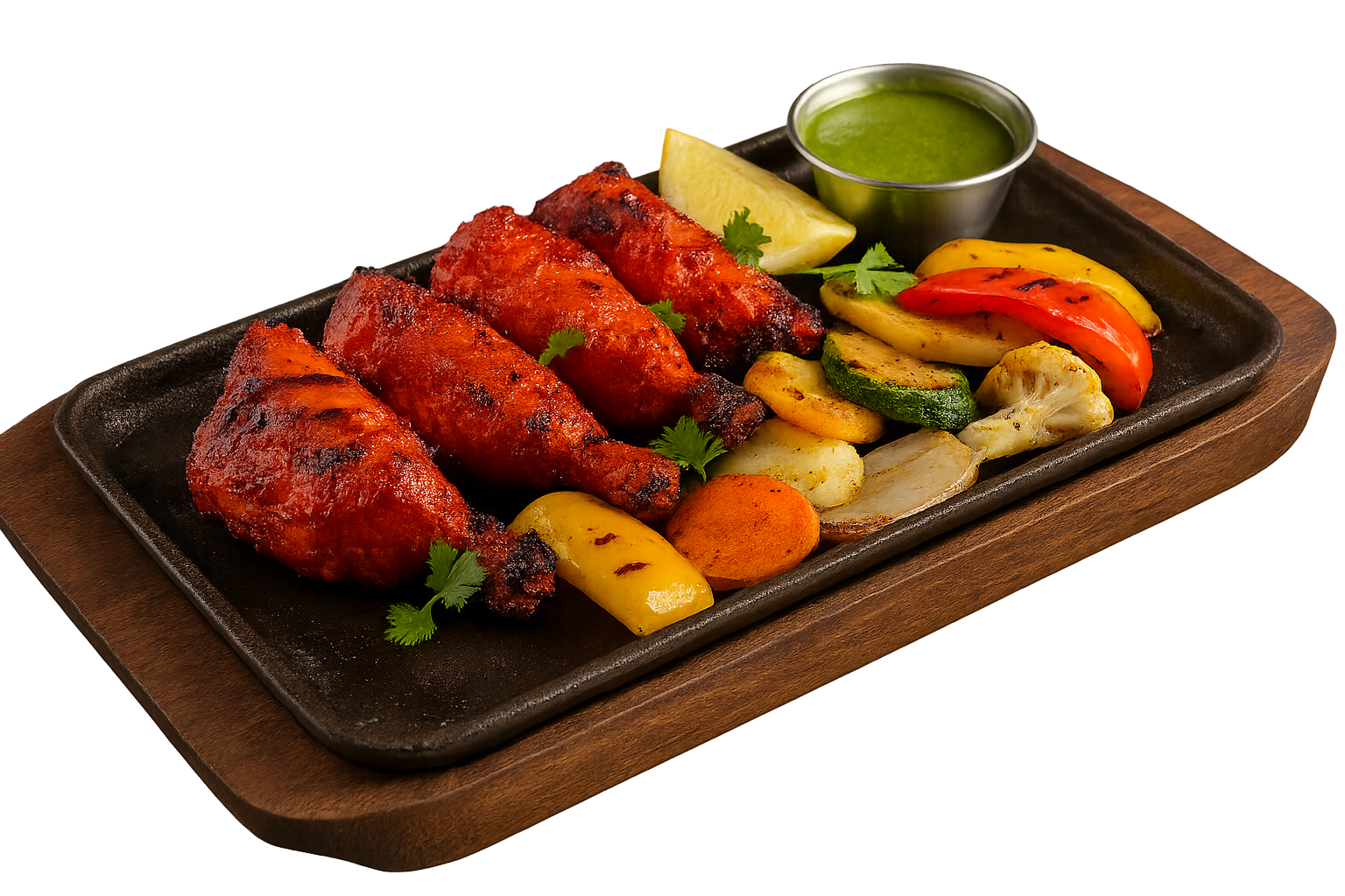 Entenfleischstücke in würziger Honig-Marinade mit Kreuzkümmel, Ingwer und Koriander. Im Tandoor gegrillt für intensives Aroma und leicht süßliche Kruste. Ein Highlight für Liebhaber von süß-herzhaften Noten.