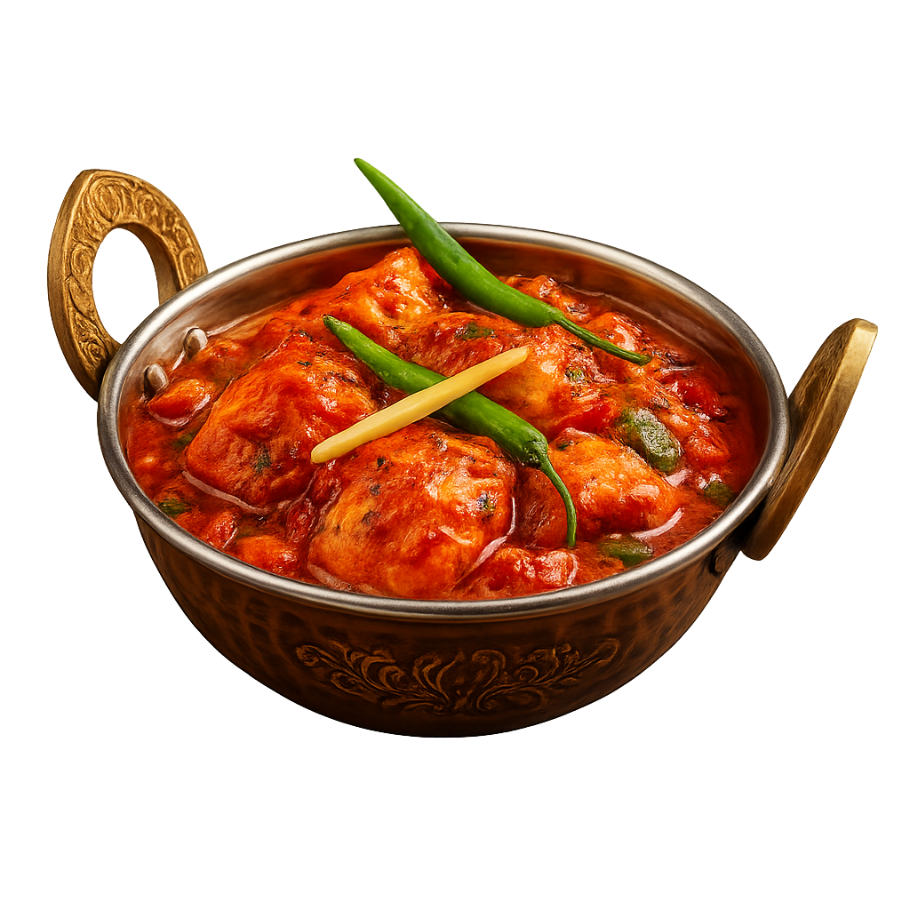 Würzige Komposition aus Hähnchenfilet, Paprika, Tomaten, Zwiebeln und Chili. In heißer Pfanne gebraten und abgeschmeckt mit Essig und Kurkuma – scharf, süß-säuerlich und besonders aromatisch.